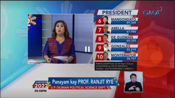 Base sa partial and unofficial count ng COMELEC transparency server as of 9:32 pm, makikita raw na hindi nalalayo ang resultang lumalabas ngayong gabi sa naging trend ng mga surveys na inilabas noong campaign period. Ayon iyan kay Prof. Ranjit Rye ng UP Diliman Political Science. Ganito rin daw ang naging resulta ng mga survey noong mga nakaraang eleksyon. Anu-ano ang mga nagbunsod ng resultang ito, na tila taliwas sa naobserbahan ng ilan sa social media? Panoorin ang panayam kay Prof. Rye sa video na ito. #Eleksyon2022