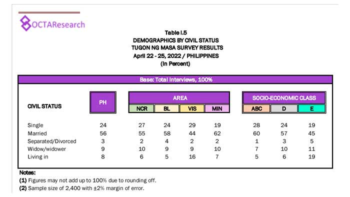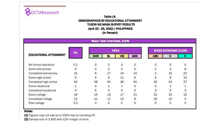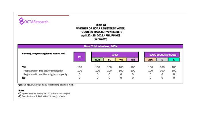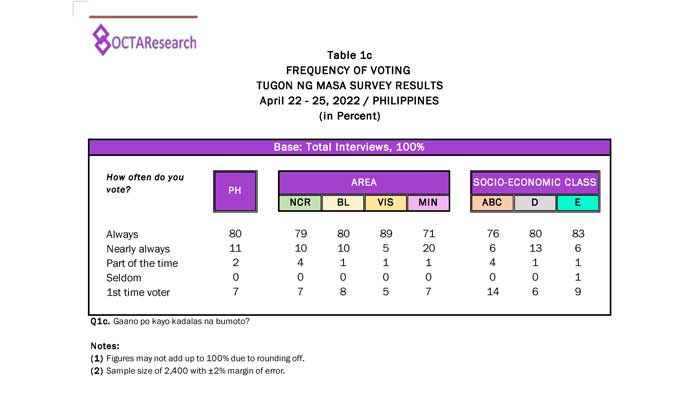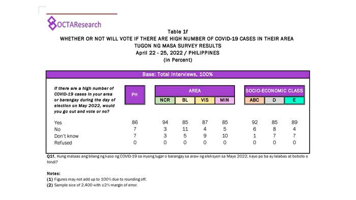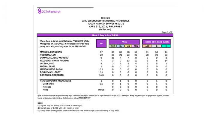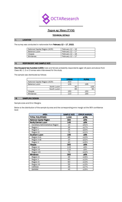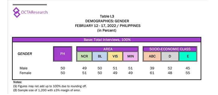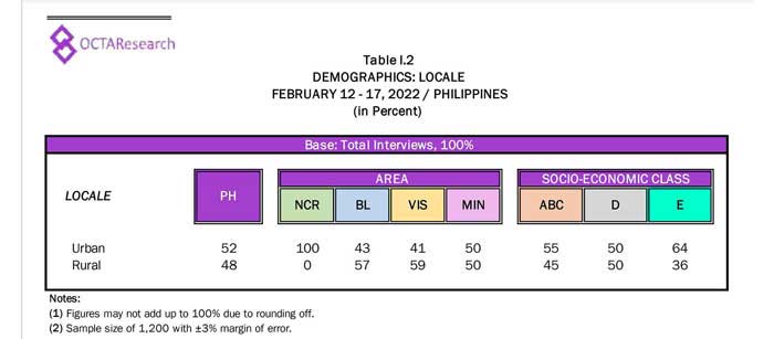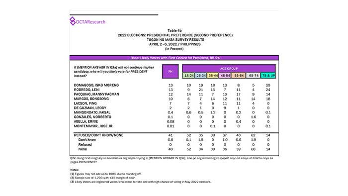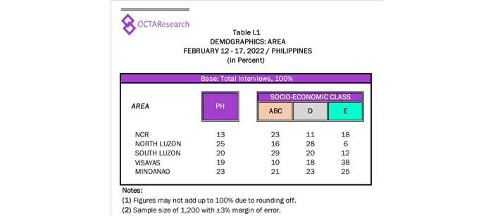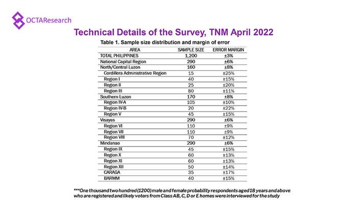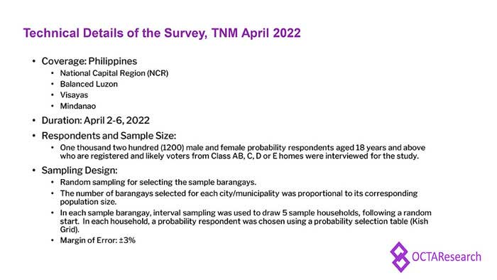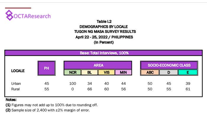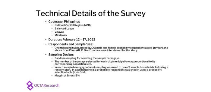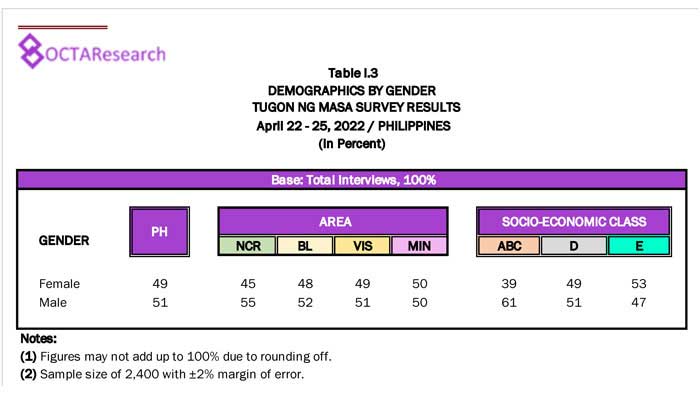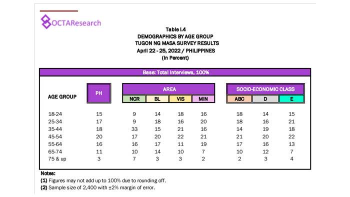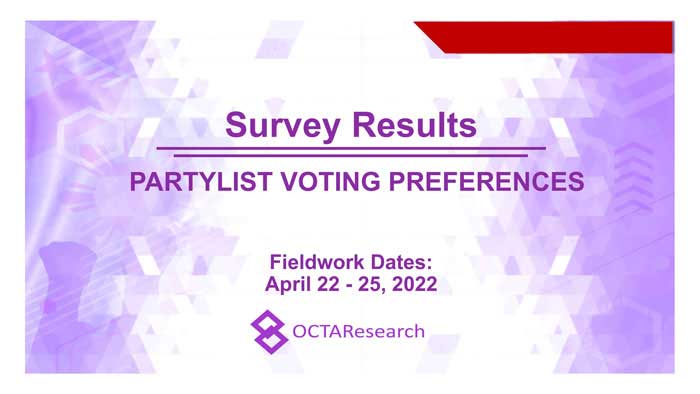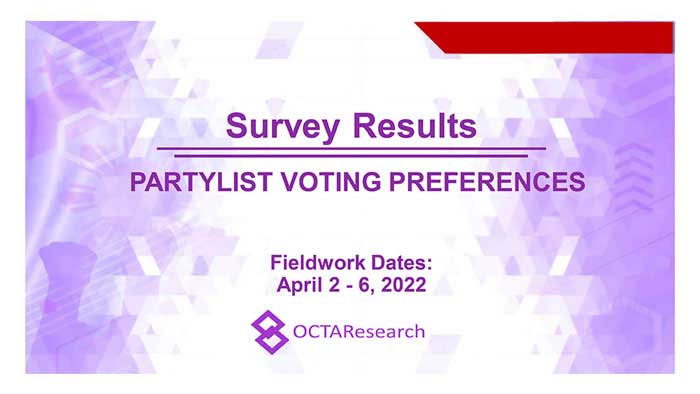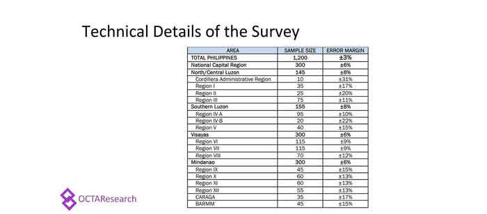 Octa Research pulled in responses from 1,200 males and females aged 18 years old and above from a survey fieldwork conducted from March 24 to 28 using face-to-face interviews.