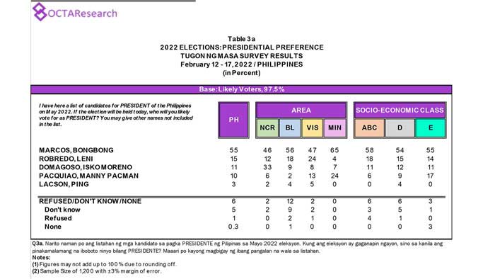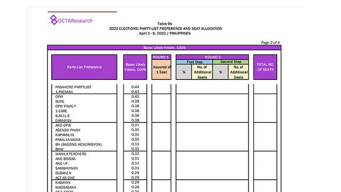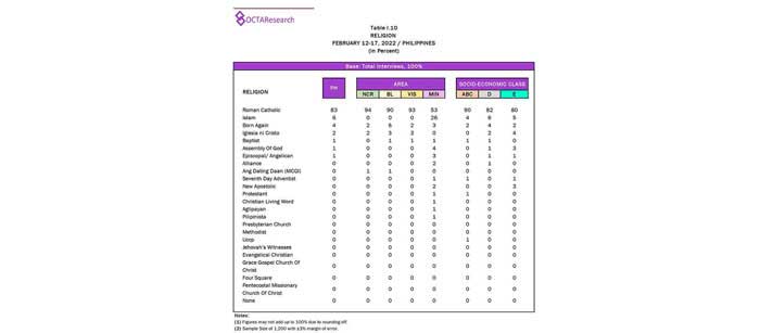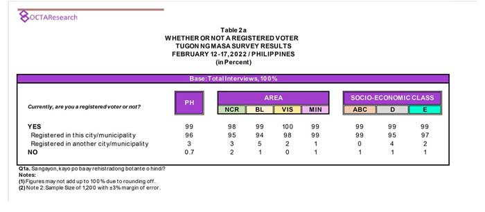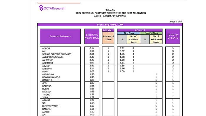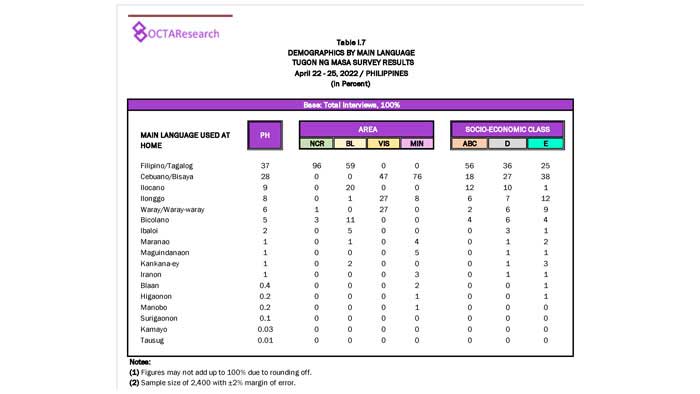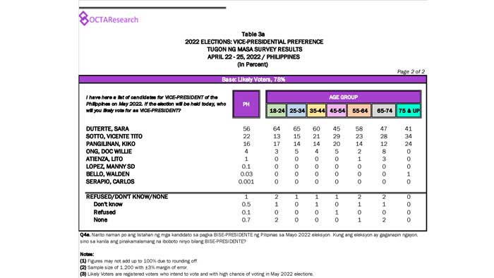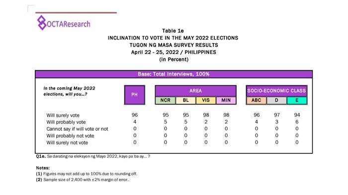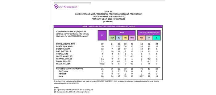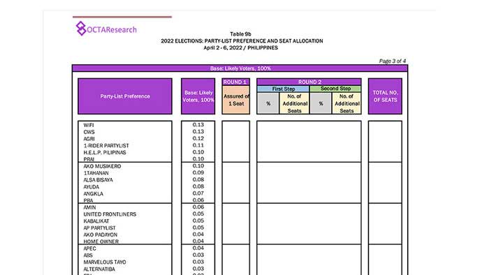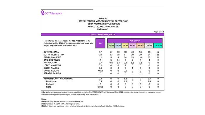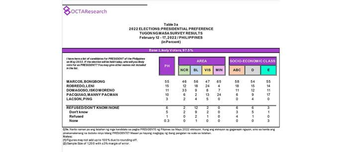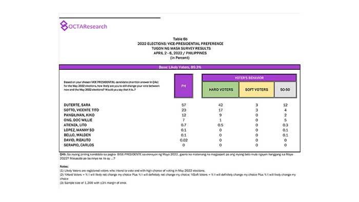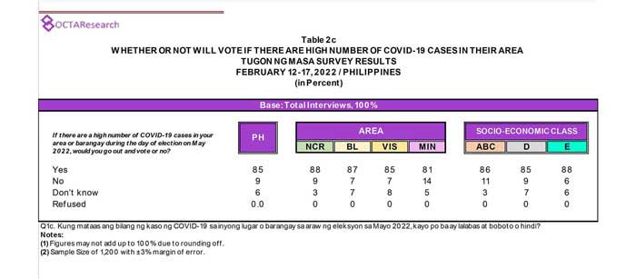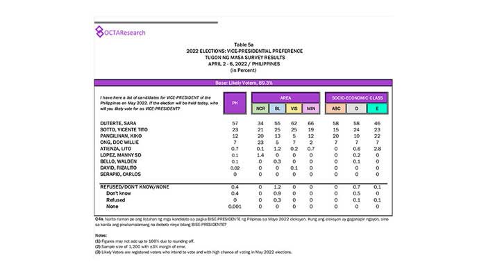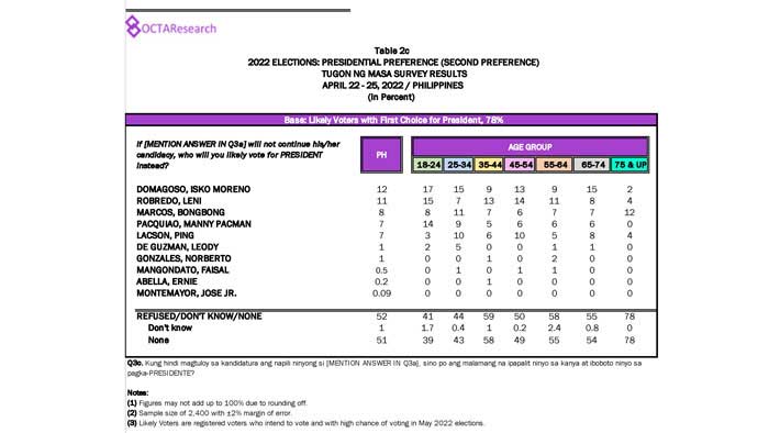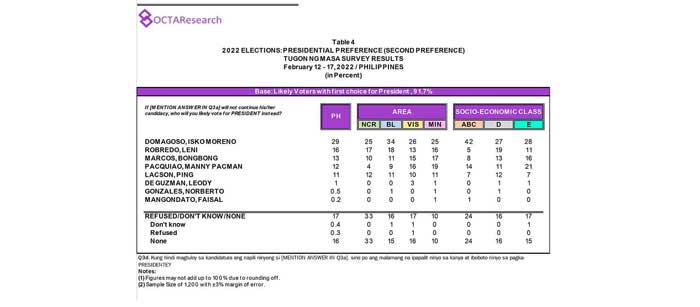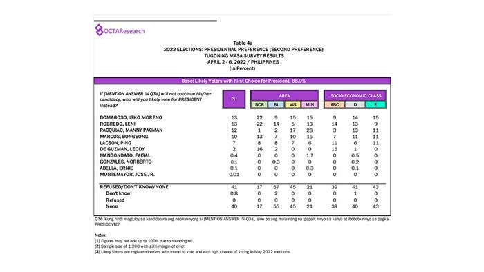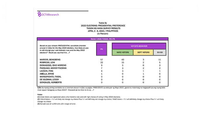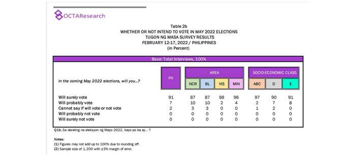 Octa Research pulled in responses from 1,200 males and females aged 18 years old and above from a survey fieldwork conducted from March 24 to 28 using face-to-face interviews.