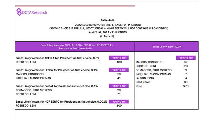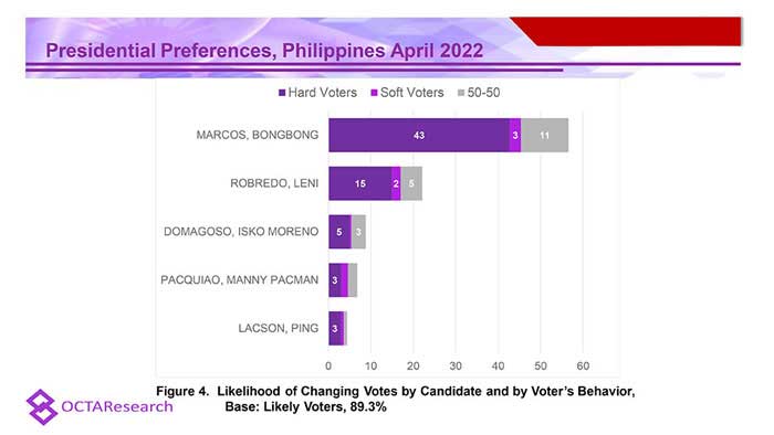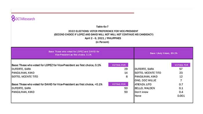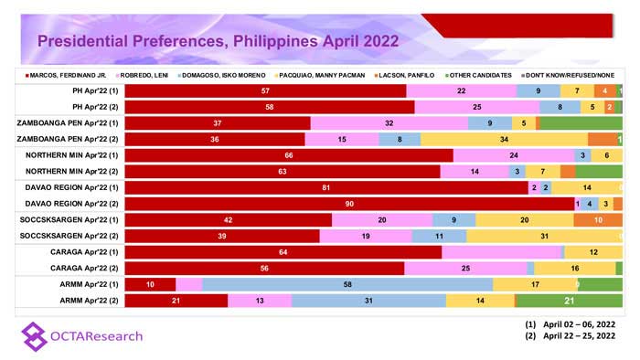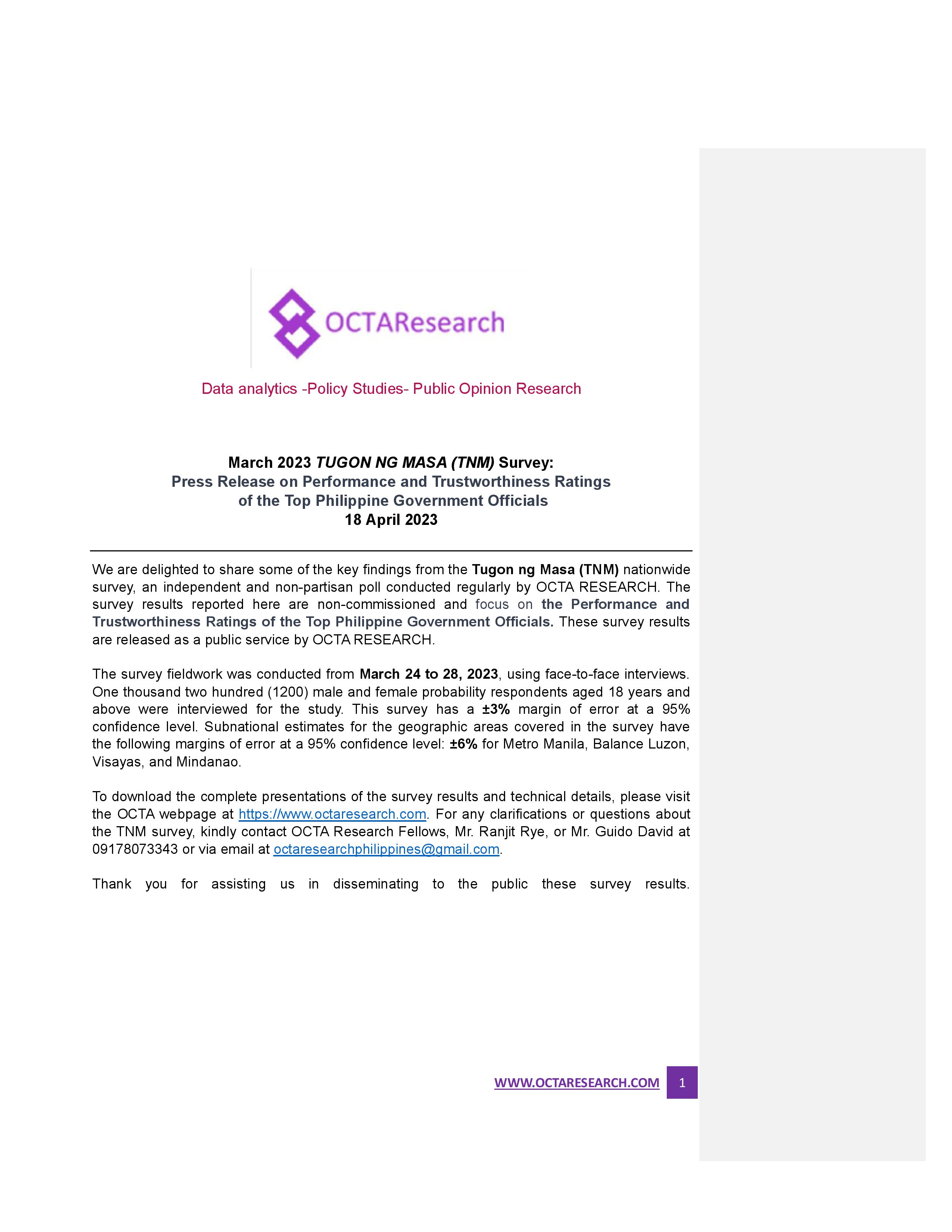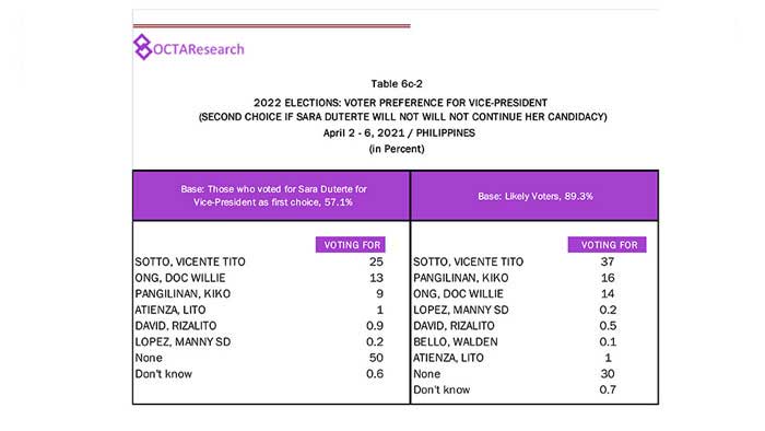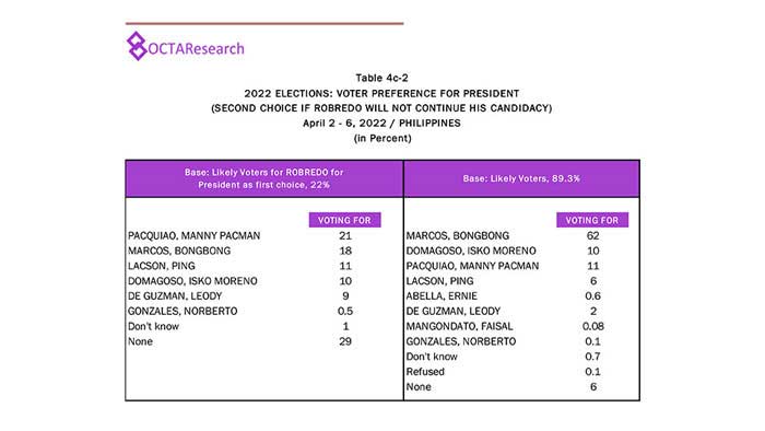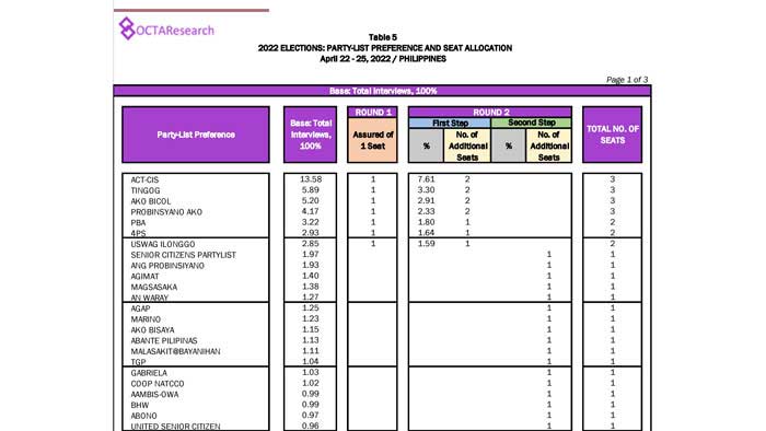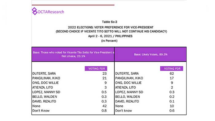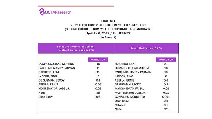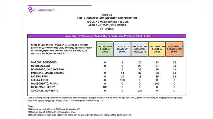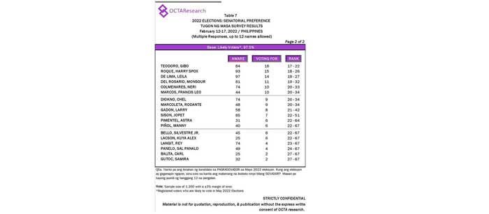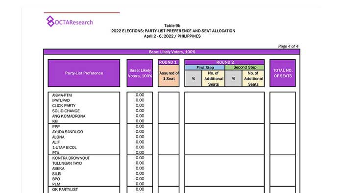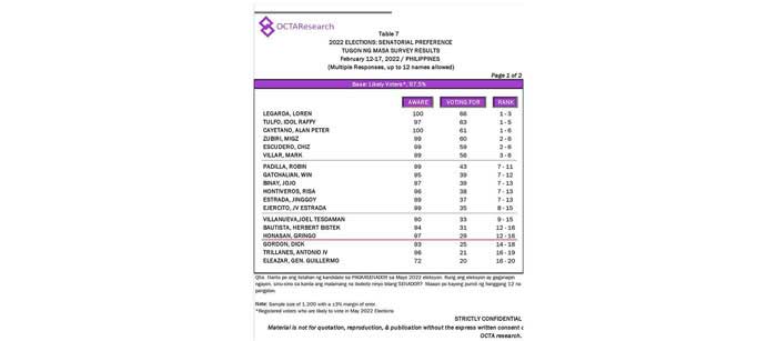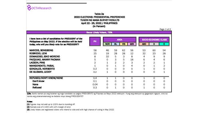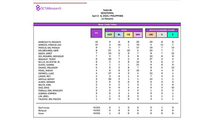 Octa Research pulled in responses from 1,200 males and females aged 18 years old and above from a survey fieldwork conducted from March 24 to 28 using face-to-face interviews.