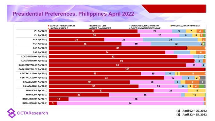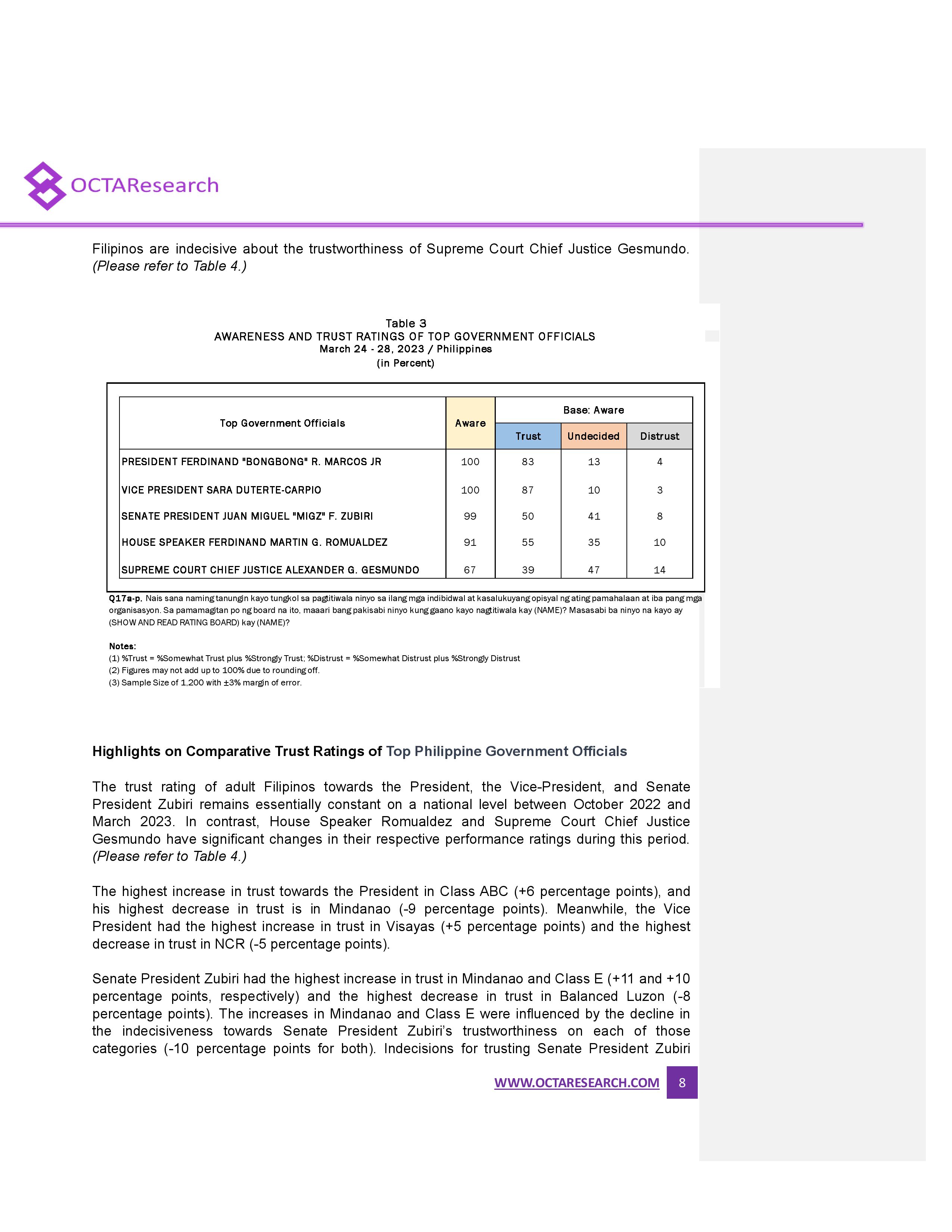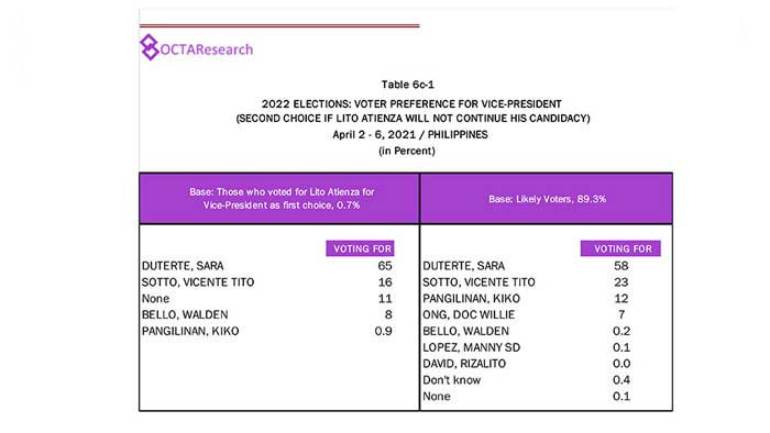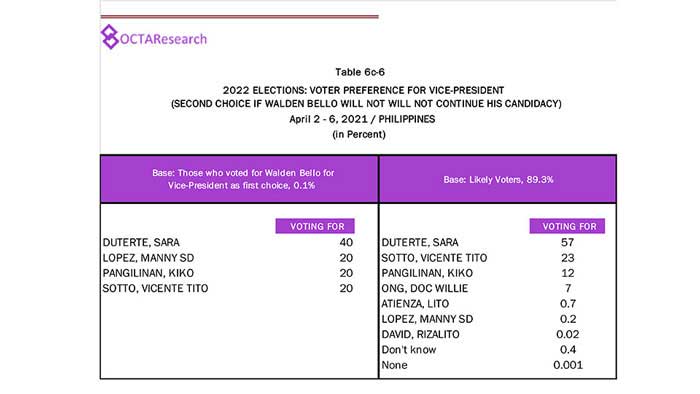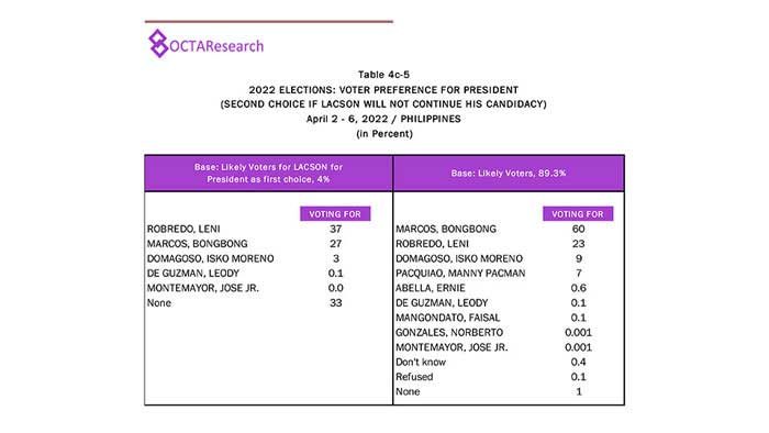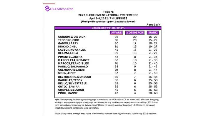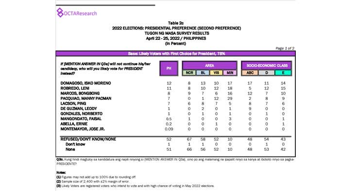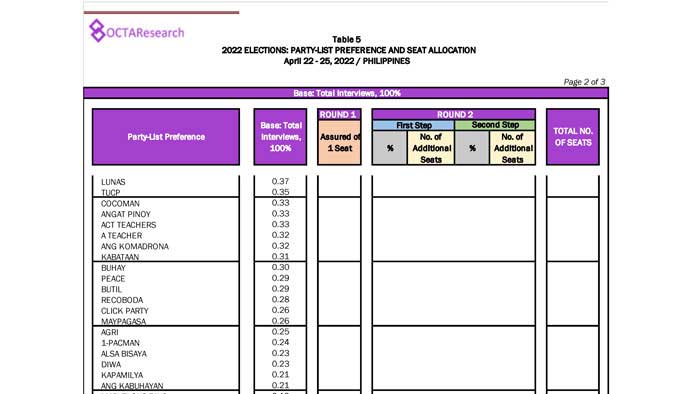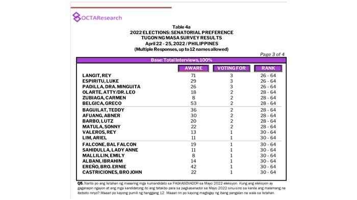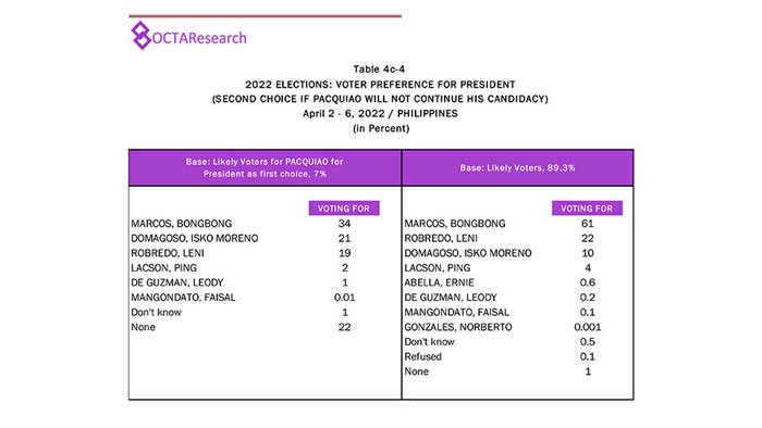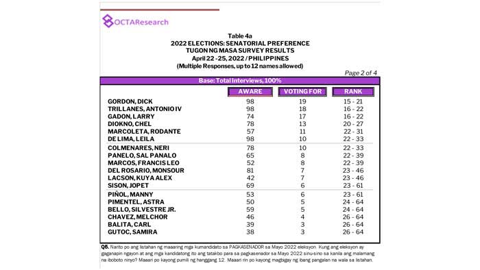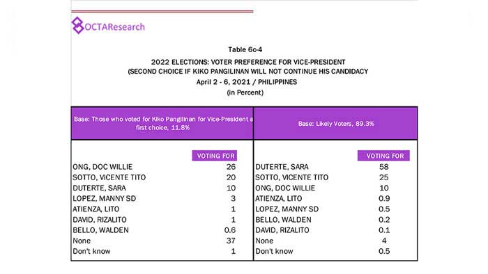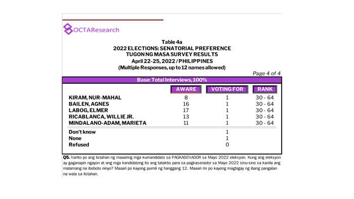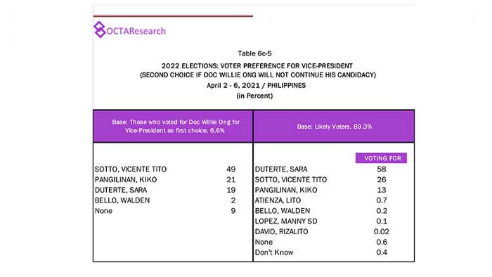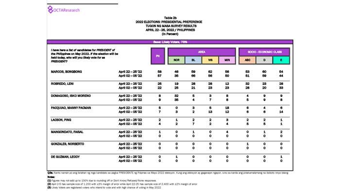 Octa Research pulled in responses from 1,200 males and females aged 18 years old and above from a survey fieldwork conducted from March 24 to 28 using face-to-face interviews.