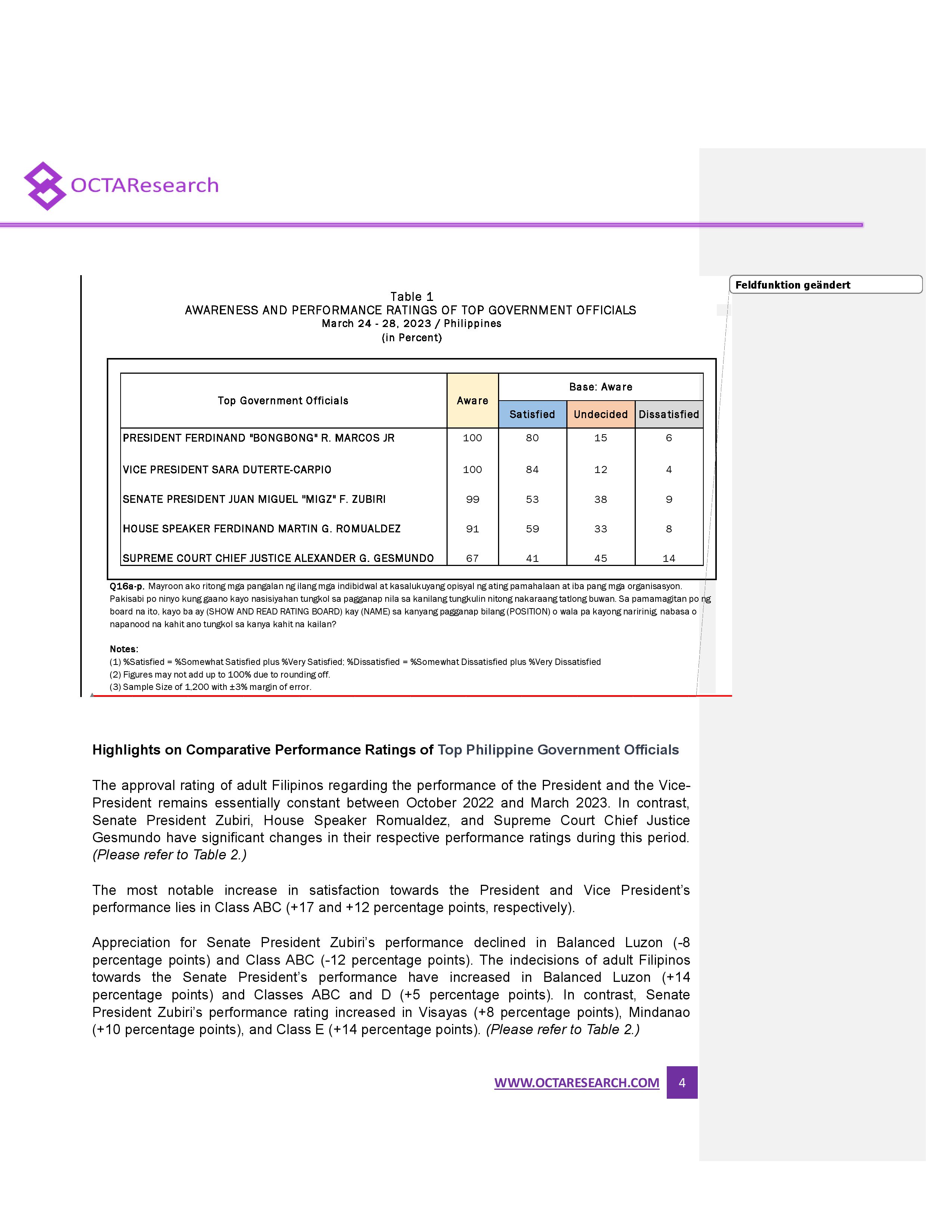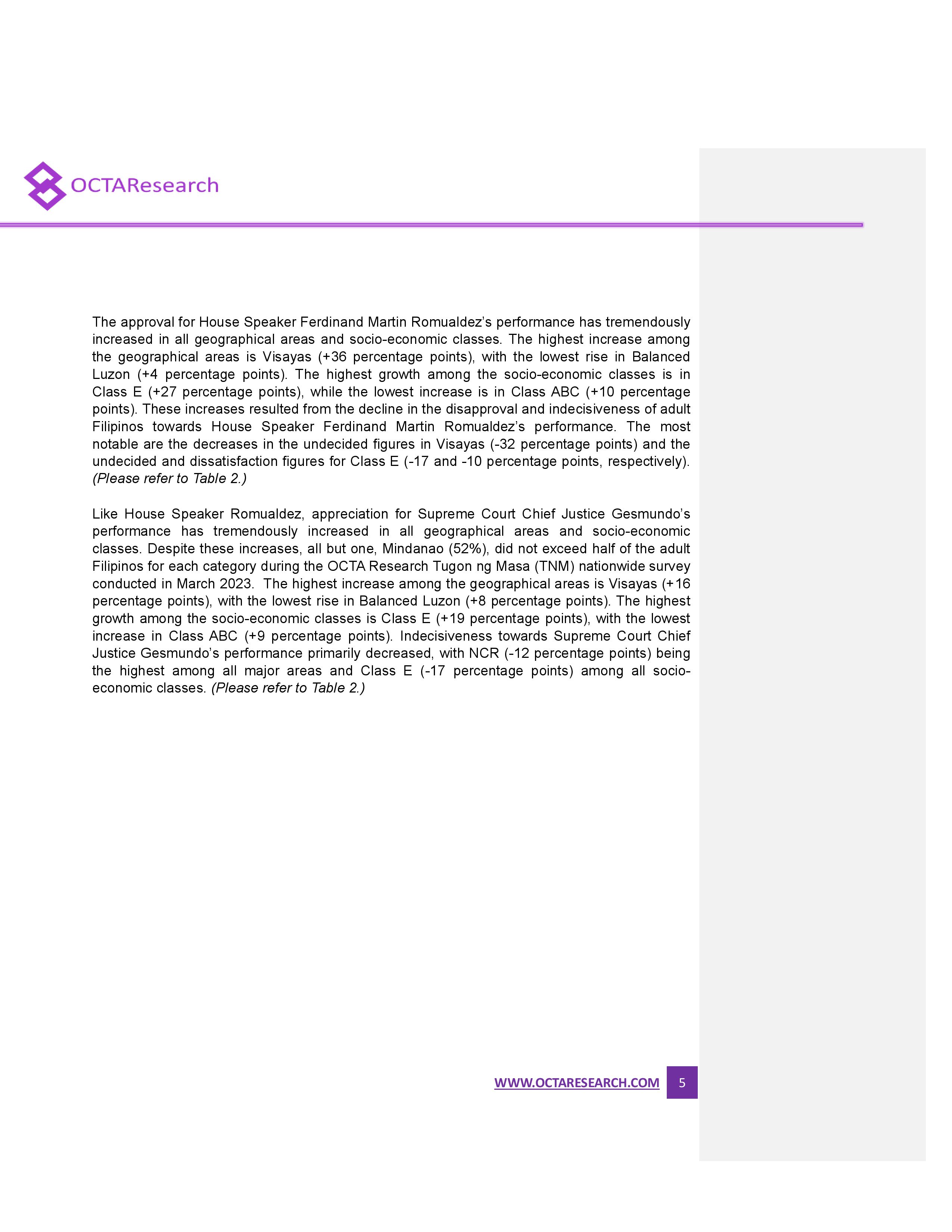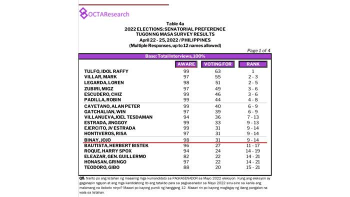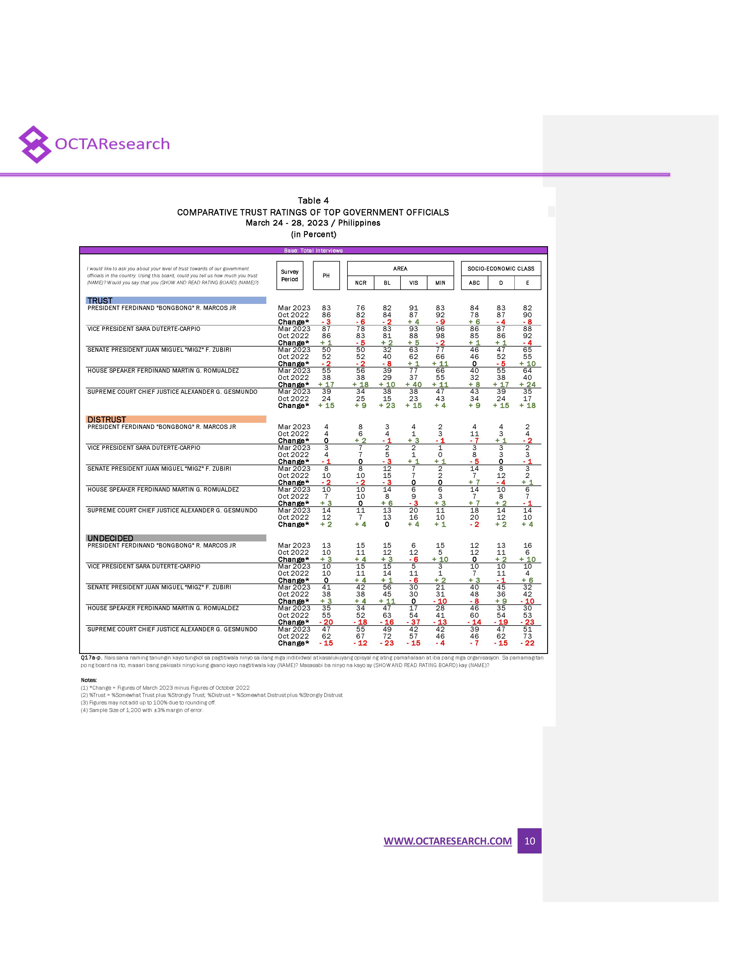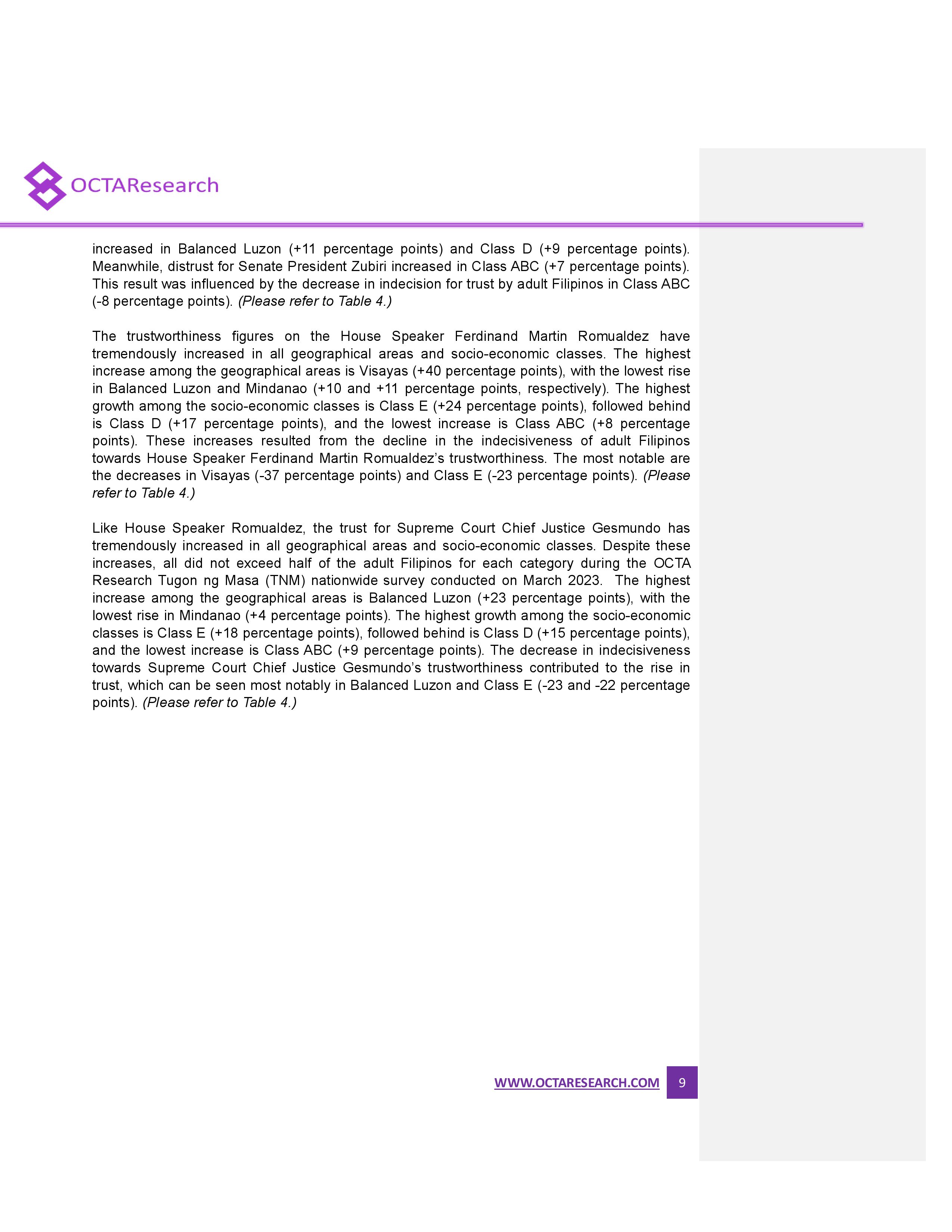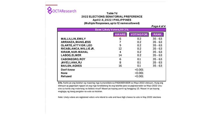 Octa Research pulled in responses from 1,200 males and females aged 18 years old and above from a survey fieldwork conducted from March 24 to 28 using face-to-face interviews.