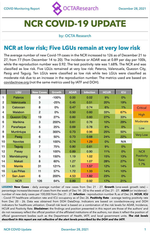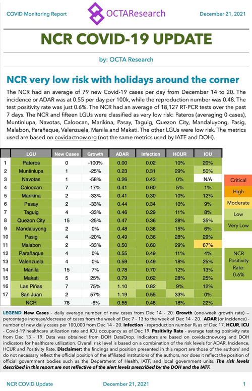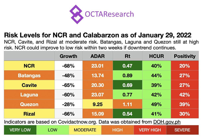 The COVID-19 daily positivity rate in the National Capital Region (NCR) went up to 16% and is still rising, independent group OCTA Research said on Friday night.
