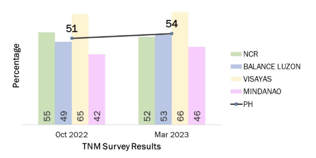Looking at the different locales, OCTA noted that Filipinos who reside in the Visayas said they were less concerned about controlling the increase in the prices of goods and services, with only 46% of them saying that it is an urgent concern.